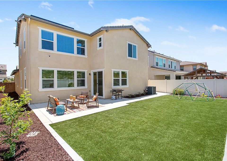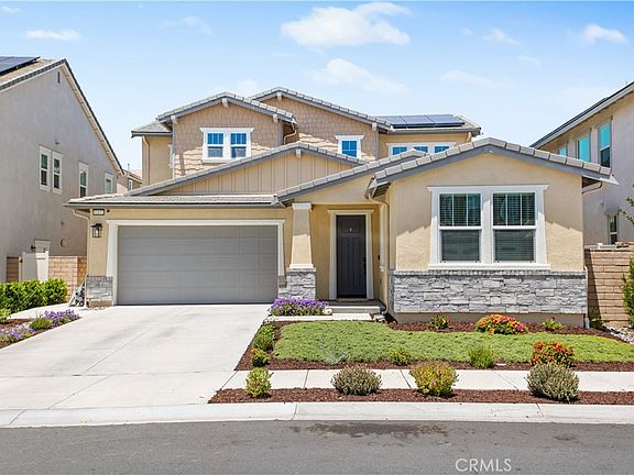 **VA ASSUMABLE LOAN OPTION at a 2.75% rate w/loan balance of $552,000. Gap Financing available** This well-priced 4-bed 3-bath home is attractive and has a versatile layout, which includes 1 full bed and 1 full bath downstairs – PLUS a Separate Downstairs “flex room” that can function as a large downstairs 5th bed, a home office, or whatever suits you best. And it’s located in Temecula’s sought-after Sommers Bend community. Don’t snooze on this one. The direct access 3-car tandem garage leads into a drop zone and mudroom for shoes, backpacks, and daily essentials. The open-concept kitchen is central in this home, featuring white cabinetry, granite counters, a large island w/breakfast bar seating, stainless steel appliances, and a double oven—all flowing seamlessly into the dining and living areas. The stylish interior is unified by consistent flooring, white cabinets, and quartz counters in all bathrooms. A custom sliding panel door in the flex room makes a modern statement, while the upstairs laundry room adds everyday convenience. Upstairs, two secondary bedrooms share a full bathroom with a dual sink vanity. The primary suite is spacious and spans the entire back half of this home; it features another custom sliding door which opens to a large ensuite with a soaking tub, separate shower, dual sinks, and a large walk-in closet. The backyard is perfectly sized and features a concrete patio area, artificial turf for low-maintenance greenery, vinyl fencing, and nice plantings at the perimeter including three fruit trees. As a bonus, no shared fence with rear neighbor, just a nicely landscaped buffer for added privacy and beauty. Additional upgrades include a whole-house water softener and filtration system, an EV charging station in garage, and solar panels to help manage utility costs. Located w/in walking distance of all HOA amenities—pools, clubhouse, fitness center, playgrounds, trails, and Sommers Bend Sports Park—this home also sits just three miles from Temecula’s renowned wineries and a short drive to Old Town, Promenade Temecula, Pechanga Casino, Costco, Golf Courses, and Murrieta Hot Springs Resort. If you’re looking for a newer built home in Temecula, that delivers good value, in a desirable community... Welcome home