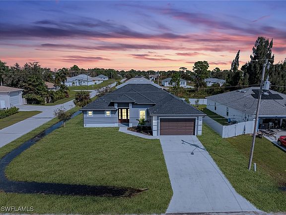 Modern New Construction in Prime Lehigh Acres Location. This brand-new 3-bedroom plus a den, 2-bath home offers sleek quartz countertops, a spacious island with stainless steel accents, and contemporary look with stainless steel appliances. The open-concept design leads to a beautiful lanai with an outdoor kitchen hookup, perfect for entertaining. Located in a prime area of Lehigh Acres, this home combines style and convenience for modern living.