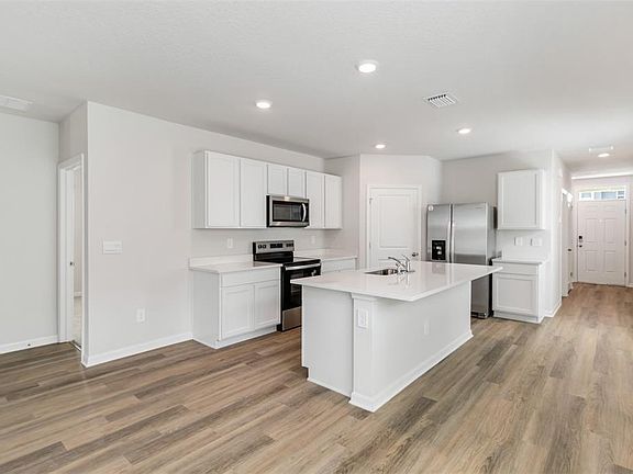 Welcome to your dream rental! This BRAND NEW construction home features 4 bedrooms and 2 bathrooms, including a primary suite with private ensuite bath. The kitchen is a chef's delight, complete with quartz countertops and modern finishes, while the open-concept layout flows beautifully with luxury vinyl plank flooring throughout the main living areas. Step outside your front door and enjoy a community that truly has it all! Resort-style pools, an on-site coffee shop, a fully equipped gym, and a fitness facility with instructor-led workout classes. For outdoor fun, you'll find a playground, basketball courts, tennis courts, baseball fields, and even pickleball courts. With new K 8 and high school on the way, this community is growing and ready to welcome you. Don't miss this chance to be the first to live here schedule a tour today!