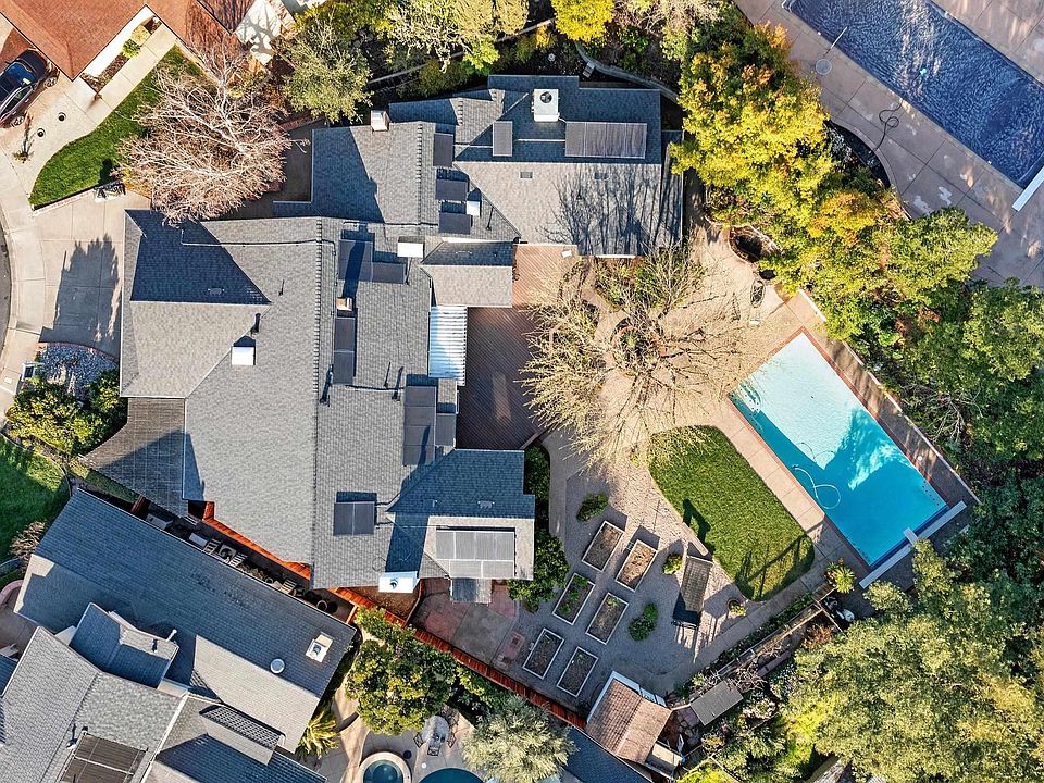 Nestled in the highly desirable Vintage Hills neighborhood, this exceptional 7-bedroom, 3-bathroom estate offers 3,559 sq. ft. of updated living space on an expansive 15,379 sq. ft. lot. With a NW facing front door this home was designed with multi-generational living in mind, the home features a thoughtful layout with three bedrooms in each wing, ensuring privacy for extended family or guests. Inside, you'll find a spacious kitchen flowing into the family room; both flooded with an abundance of natural light. The primary suite is a true retreat, featuring an ensuite bath and serene backyard views. A seventh bedroom, currently used as a library, is the perfect opportunity for a home office, ideal for telecommuters or those who love a quiet reading space. Step outside to your private backyard—a beautifully landscaped yard featuring a sparkling pool, raised garden beds, and an automatically watered chicken coop for fresh eggs daily. Multiple fruit trees offer seasonal harvests, and owned solar panels power both the home and the solar-heated pool, providing energy efficiency year-round. Situated just minutes from award-winning Pleasanton schools, charming downtown Pleasanton, and scenic parks and trails, this rare estate combines luxury, comfort, and convenience.
