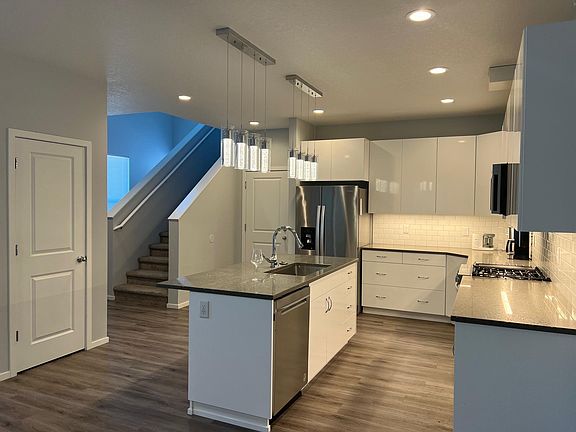Built two years ago, with many high end features. This home was constructed to exceed several of the new high energy efficiency codes. The home has a modern, open plan living area on the main floor equipped with a 75 inch Ultra High Definition flat screen television and home theatre surround sound audio system. The Designer kitchen has and island design with quartz countertops and undermount sinks, high end custom cabinets and under cabinet lighting. The kitchen is equipped with a Gas range, large double door refrigerator/freezer with ice and water dispenser, microwave and dishwasher. Upstairs the laundry room is equipped with a washer and dryer. The Master Suite has a private attached bathroom with double sinks and a walk-in shower finished with Tile and marble. Walk in custom shower. The Master bedroom also has a generous walk-in closet. Three other bedrooms upstairs all have closets and two of them have views to the south with a peek at the Portland lights and the Columbia river. There is a second full bathroom upstairs to serve the extra bedrooms. The garage is extra wide and is equipped with extra storage shelves. This home close to downtown Vancouver, just 3 minutes from Highway 14. It it is close to the I5 Interstate Bridge. The Grand Central shopping center and Fred Meyer superstore is conveniently located about 3 minutes away. Harney School is a 5 minute walk from the home and this is a dual language school. (Spanish/English). It takes about 15 minutes to PDX (most days). 5 minutes to Park and ride to Portland. The back yard has a lawn and is fully fenced. NOTE: Some photos are of mirror image unit. First and last month rent plus security deposit required. STRICTLY No Smoking. Renter pays all utilities. No cats. Dogs welcome with pet fee. Lawn cutting provided by landlord.