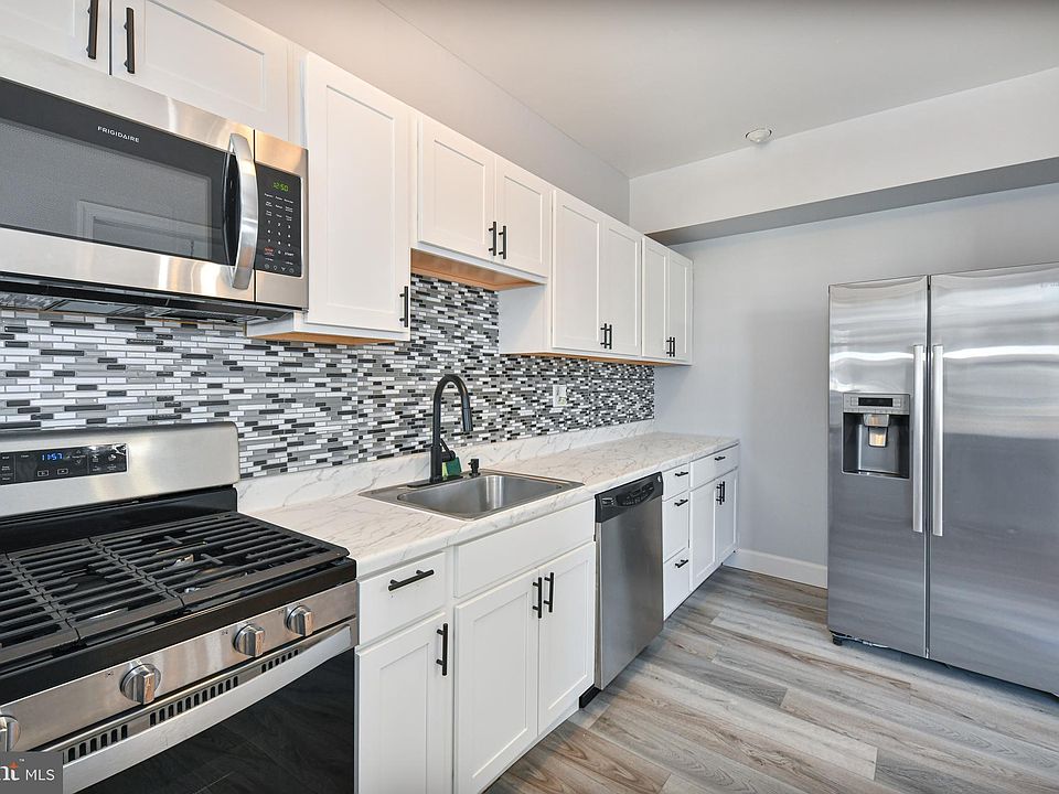 PRICE CUT: $7,999 PLEASE DON’T LET THE DAYS ON THE MARKET SCARE YOU; THIS IS A TRULY REMARKABLE PROPERTY AND A MUST SEE! This spacious porch-front house in the Belair-Edison Community boasts 1796 sq ft of living space and features four large bedrooms. The master bedroom includes a sitting area suitable for a small computer desk, ideal for working from home or enjoying TV, along with a vast closet. The upstairs bathroom offers dual access: a private entrance from the master bedroom and another from the main hallway. A skylight above the bathroom floods the space with natural light by day and allows for stargazing at night. This room is updated with new fixtures and flooring. The first and second levels showcase beautifully refinished hardwood floors that enhance the home's aesthetic. The basement bedroom is outfitted with new carpeting and a sizable closet. Adjacent to this is a finished family room, providing a cozy spot for a sofa and TV. The updated full bathroom features new flooring, mirrors, vanity, and toilet, serving the basement bedroom occupants. The unfinished portion of the basement, separated by a corridor door, is expansive, well-lit, painted, and offers abundant storage space for clothing bins, bicycles, exercise equipment, and more, including the washer and dryer. The kitchen has been completely remodeled with new white cabinetry, flooring, and stainless-steel appliances, including a large microwave over the range, dishwasher, and a double-sided refrigerator with an ice maker. The living and dining rooms are generously sized, accommodating full sets of furniture. The house is freshly painted in warm hues, creating a welcoming ambiance. Additionally, the property features a newly repaved two-car parking pad at the rear. Conveniently located near schools, parks, shopping, and the bus line, this 'AS IS' home is ready for pre-approved buyers to schedule a viewing. Don't miss out on this inviting property.