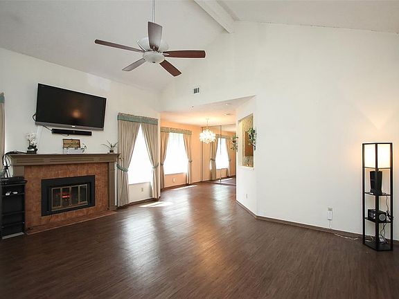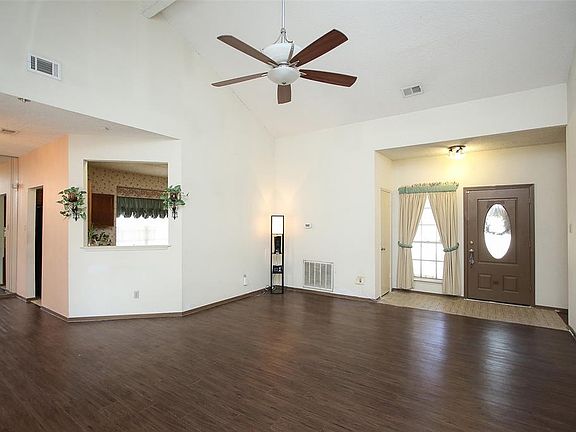 Very Open Living area, great for Entertaining. High Ceilings! Nice Fireplace. Plenty of windows, with custom drapes, which will remain, provide lots natural lighting. Formal Dining, with mirrored wall is open to Living room. Spacious eat-in Kitchen with Breakfast area, plenty of storage and counter space. Open view into Living & Formal dining areas. Nice laminate wood flooring in spacious Living area and in the Secondary bedrooms. *Split Floor plan, provides Master bedroom privacy from secondary bedrooms. Spacious Master bath with dual sinks, large vanity, Separate Tub and Shower. Good sized Back yard, enjoy your outdoor leisure in your own fenced back yard.. QUICK Move-In! Homeowner access to community pool and tennis courts. Great Location close to; Shopping, Dining, Library, Mercer Arboretum, short distance to Bush Intercontinental Airport. Spring ISD.