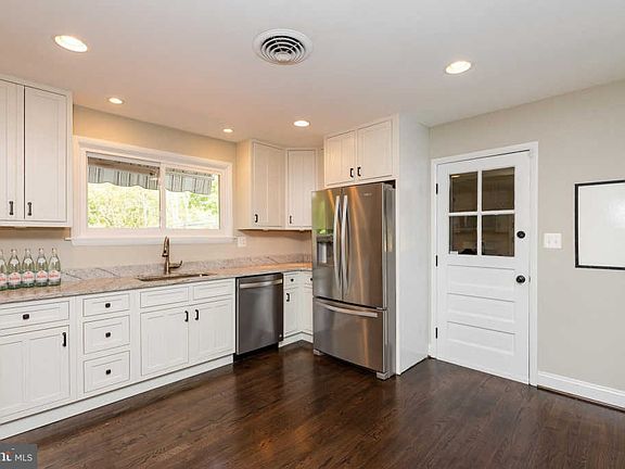 Gorgeous renovated rancher with fully finished basement is perfectly set on a premium lot! Enter to find light filled living spaces with newly refinished hardwood floors spanning main level. Stylish updates in chef's kitchen boasting stainless steel appliances, white shaker cabinets, granite countertops, and open back yard views! Relax in spacious living room with bright bay window and cozy fireplace. Main level owner's suite features dual closets and updated attached full bathroom. Expansive fully finished walkout lower level with rec room, laundry, and ample storage accesses sprawling 1/2 acre lot with play area and party sized deck with retractable awning! This home is move-in ready today!