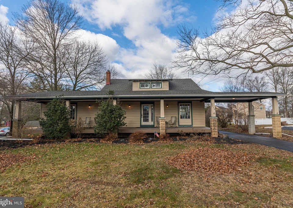 One of a kind home! Wonderful large Craftsman style home bursting with charm and with an amazing front porch measuring at 10 ft x 54 ft IT IS MASSIVE The porch was replaced in 2020 and runs the length of the front of the home. In 2020 the roof was also fully replaced. With 2 main level bedrooms and a full bath, this is the perfect home for someone that needs main level living and plenty of space for family guests and home offices. Three sets of ORIGINAL wooden French doors open onto the front porch boasting of days gone by and allowing tons of natural light to flood into the home. Inside original warm oak hardwood floors are found throughout the home and as you enter through the front door a beautiful wooden staircase greets you. The massive living room is found to the left of the entry and a large dining room for those family gatherings to the right. There are a total of 5 well-appointed bedrooms, two downstairs, and 3 upstairs. Two full baths, one on each floor. A den in the front of the home with a set of French doors to the front porch and another set from the living room entrance. From the side entrance, just past the covered portico, is the main floor laundry/mudroom which leads you into the kitchen. Full size kitchen with storage and large sink. A new patio is in the back overlooking the spacious backyard. Plenty of parking. Downstairs is a full unfinished basement that runs the length of the home and offers an enormous amount of space-it really has to be seen. Convenient commute on SEPTA R5 line: Colmar station is 1.3 miles away, Fortuna is 1.6 miles away. A short drive from 309 which is a main artery to Montgomery and Bucks County shopping and restaurants. A rare opportunity to own such a large 5-bedroom home at this price. Make an appointment today because it will not last long! Showings begin 2/5