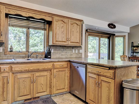 Located in north Bismarck this home has 4 large bedrooms, 3-bathrooms, 3-stall heated garage, boat/camper pad, steel siding, & a walkout lower level. The kitchen has stainless steel appliances, many cabinets providing great storage, countertop stool seating, pantry cabinet & a built-in mail/office desk. Recent kitchen updates include newer countertops & stone backsplash. The dining room is spacious with room for a large table & the sliding patio door provides access to the maintenance free deck. The living room has vaulted ceilings & the 4 panel windows provide great natural light. The master bedroom/bathroom suite has a large closet, undermount sink, & a recently updated tile shower. Completing the main level is a second large bedroom & a full bath. The walkout lower level has a 2-room family room featuring daylight windows, stone fireplace with tv mount & mantel. Completing the lower level are 2 large bedrooms with ground level windows & custom closets, storage room, ¾ bathroom, & laundry room. The exterior features rock landscaping, underground sprinklers, garden spot, paver patio, maintenance free deck, steel siding with brick veneer, & a boat/camper pad.