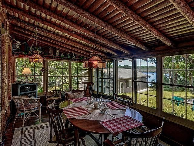 HANCOCK LAKE LOG HOME - Truly thirsting for that up north ambiance of yesteryear garnished with a large dollop of class. This well maintained northwoods retreat may be answer. Seriously, you can't help but fall in love. But to seal the deal when viewing the property be sure to take a few moments to sit quietly on the three-season porch feasting upon the waters of Hancock Lake, or sit in the great room in the middle of the house absorbed by the history to which the wood burning natural stone fireplace bears witness and give yourself permission to reflect upon the memories you'll create. But if all that is not enough tack on these features: guest cottage that sleeps up to five, private setting, a peninsula with over 700 feet of shore, two docks, a drive thru dry boathouse, abuts thousands of acres of public land with trails for hiking, snowmobiling, cross country skiing, and of course hunting. Forget about trailering your toys, it's all right here literally on your doorstep.