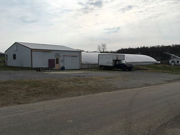 This 102 acre farm has several buildings - 30x82 tool shed, 36x72 workshop, 2,000 sq. ft. produce building with cooler, 4 functioning green houses, feed barn, and a hay barn. Also has spring feed ponds (4 ponds), feed bins, creek bottom, taylor outdoor furnance for home and green houses. It has 90 tillable acres.