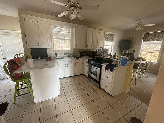 Great location and acreage! 4 bedrooms, 2.5 baths, living room with fireplace, den, and kitchen with dining. Covered front porch, 2 car garage, metal carport, and outdoor building. Nice pond and 7.44 acres.