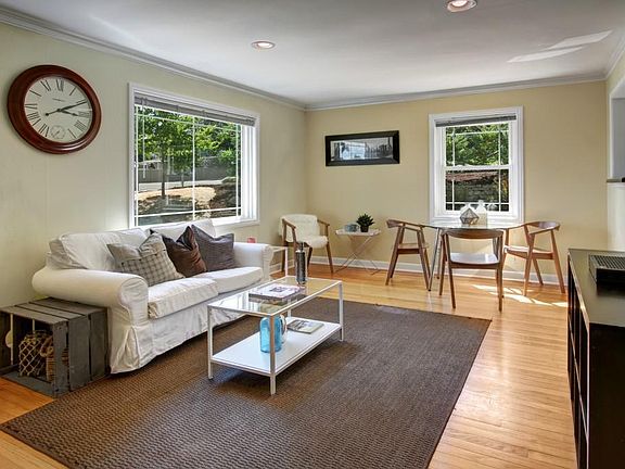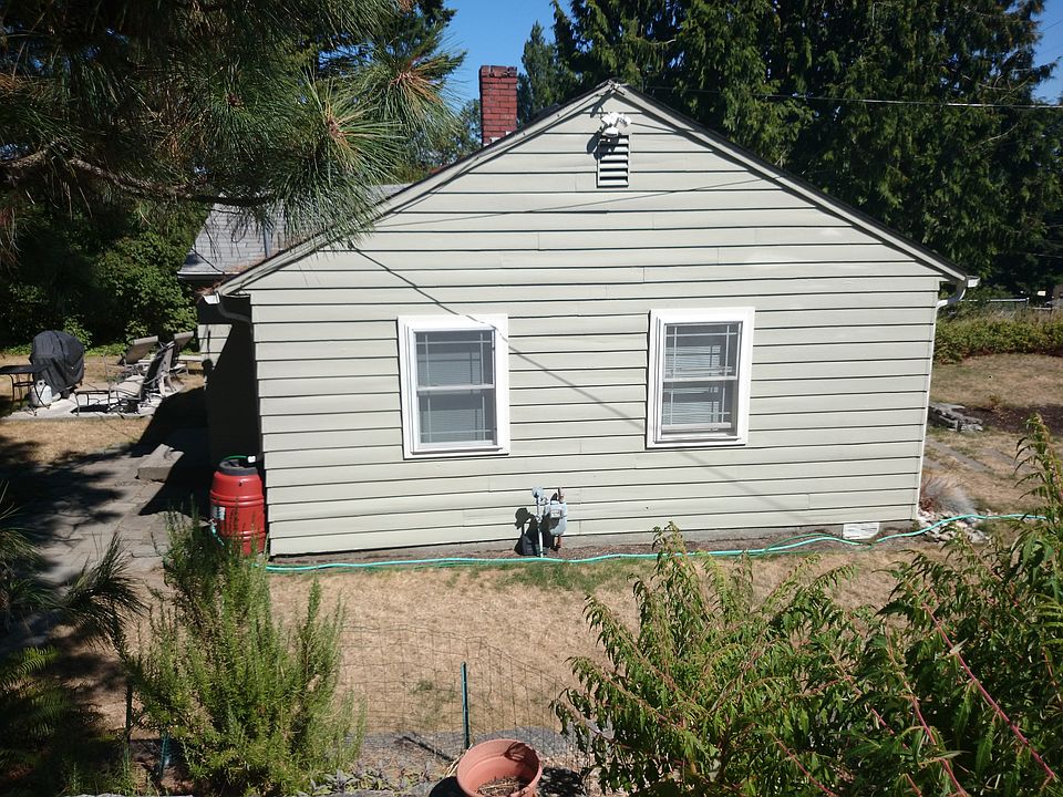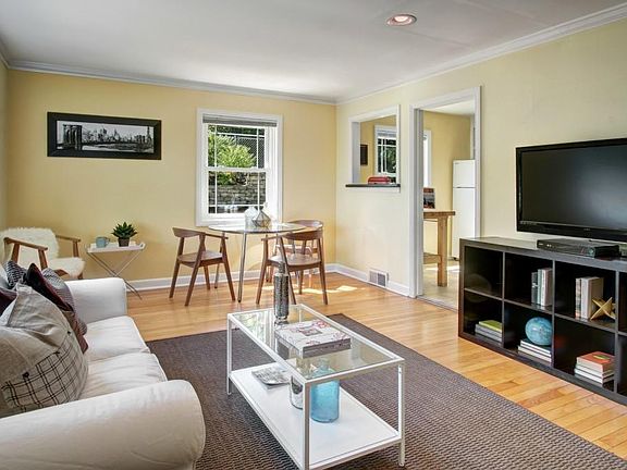 Sunny, hilltop West Seattle (Arbor Heights) home on a large corner lot in a quiet neighborhood. Close to hip restaurants and bars in White Center and bus rapid transit. Hardwood floors, washer/dryer, dishwasher, partial basement and garage. View of Mount Rainier from the front bedroom. Majestic ponderosa pine and sunny planting bed. One year lease. Tenant responsible for utilities and yard maintenance. There is a large pine on the property, which requires periodic raking of needles. Lawnmower provided. One small dog or up to two cats allowed. Yard is fully fenced. This house is appropriate size for two. The basement shall not be used as a bedroom. Minimum credit score 720. References.