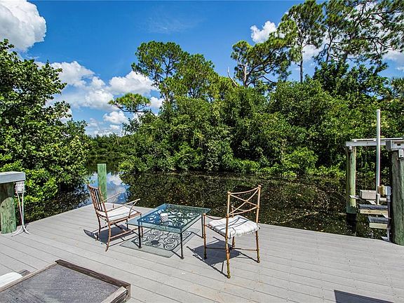 SERENE MANGROVES BACKDROP along 85 FEET OF SALTWATER FRONTAGE!! RV PARKING with HOOK-UP and a NEW ROOF in Sept 2021!!! This Harbor access beauty is complete with an oversized Trex composite dock and a concrete dock, boat lift and seawall! Stylish crown molding and custom, sophisticated bead-board ceilings throughout this home adds the perfect finishing touches for a unique cottage/beach vibe here! The kitchen features a warm, stone-look textured tiled counters and backsplash, recessed lighting, eat-in space, white appliances and garage access for ease of bringing in your groceries. The master suite has his and hers closets and an exclusive en-suite bathroom that showcases multiple finishes, rendering a zen, spa-like atmosphere! There is a generous amount of space both inside and outdoors to entertain all of your family and friends! This impeccable, bright and airy, move in ready home boasts a striking leaded glass front entry door, tiled flooring throughout, a HUGE 27x12 Florida room under A/C with water views all around, upgraded lighting throughout, a large laundry space with storage, modern upgraded door handles that create a rich feeling and an extra deep garage. Outdoors, you will find 2 large storage sheds PLUS storage off of the Florida room as well! The backyard is a private, tropical paradise boasting a waterfront "sandy beach" fire-pit spot, PVC fencing along both sides of the property, a partial covered concrete deck to relax in the shade -- all commanding a view of the mangrove-laden environment! THIS HOME HAS CHARACTER that needs to be seen in person to fully appreciate the exquisiteness being offered here! Only one bridge (approximately 1.5 miles) to the open waters of the Charlotte Harbor! No HOA and no deed restrictions!! On SEWER and CITY WATER! Less than 10 minutes to the fabulous downtown Punta Gorda and quick access to US-41. The Florida lifestyle can be yours TODAY!!! ** the lanai roof is being repaired on Wed 10/13/21