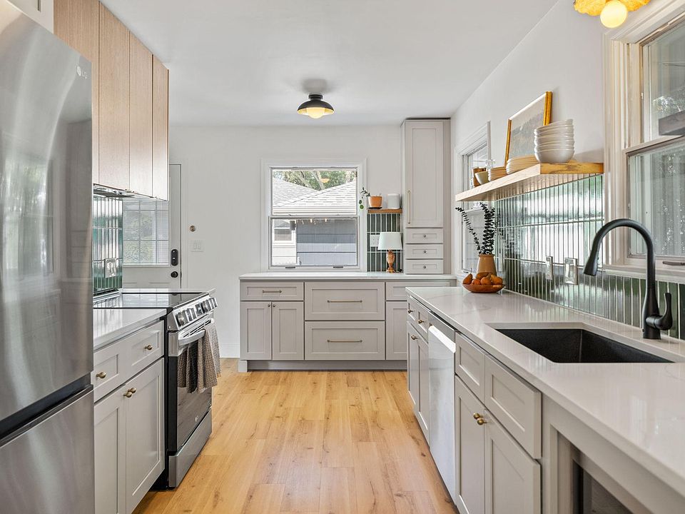 Welcome home to this exquisite and meticulously renovated 1955 rambler, where one level living meets modern elegance. Nestled in Bloomington, 3218 W 88th Street has undergone a complete transformation. The heart of this home is the fully renovated kitchen, thoughtfully redesigned with stainless steel appliances, ample quartz countertops, curated open shelving, and a sleek subway tile backsplash. This kitchen invites culinary creativity and serves as a central hub for entertainment. The primary bedroom is a true retreat, boasting an ensuite bathroom complete with a fluted built-in, terrazzo flooring and moody detailed wall paneling. Two additional bedrooms, each boasting ample closet space, share a meticulously updated bathroom. From the added basement bedroom + bathroom, to the updated plumbing, electrical, and mechanicals, every aspect of this renovation has been carefully considered to offer modern comfort and peace of mind.