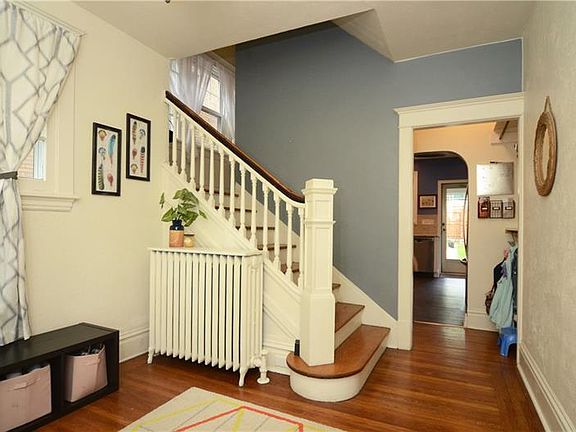 Own this CLASSIC! and Celebrate the space featured in this 4 to 6 bedroom home offering Hard Wood floors, Covered front and back porch, One car detached garage with keypad access, and newly fenced yard! New hot water tank, new roof-gutters-downspout, new carpet on 3rd floor, Updated 200m amp elec service, Most windows are new; Total Kitchen make-over is fully equipped and brimming with appeal; Stainless appliances, Cambria Quartz counter tops, Wood-style quality-durable vinyl flooring, Sparkling white cabinetry complimented by neutral backlash and you will love the pull out pantry storage! Pocket doors add charm and create private or quiet spaces. House freshly painted. Three fireplaces =one gas and two decorator. Second floor laundry for REAL ACCESSIBILITY! One full bathroom and a lower level Pittsburgh "potty". "Cool" prevails in the summer time with four air conditioning units. Alley-Access DELIVERS-- Carry those groceries all on one level from rear garage to kitchen door!