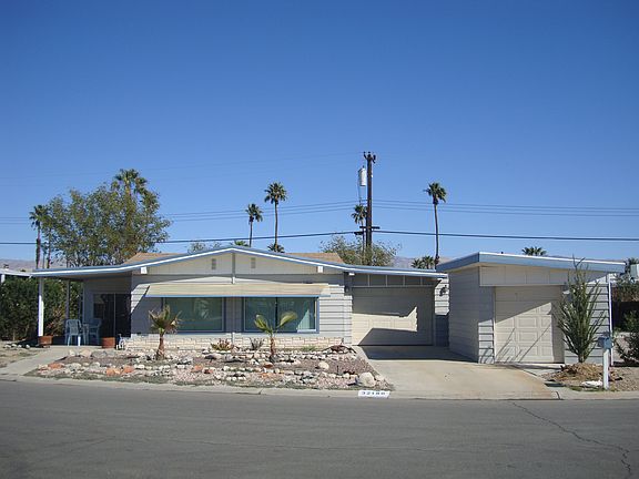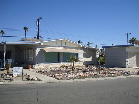 Beautiful Manufactured Home on YOUR OWN LAND. This home features 2 bedrooms and 2 baths, a spacious living area and a large California Room. Covered car port with automatic garage door and golf cart garage. New paint inside and out, home comes with appliances and a COLD A/C for those hot summer days. New landscaping and spacious front and back yard. This property is a great second home and free Golf for the owners is included. Centrally located to all that the Coachella Valley has to offer
