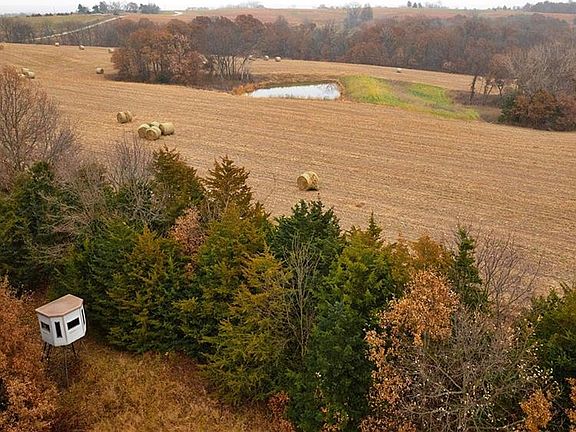 Presenting an expansive Home & Shop Combo Building on 40+- Acres near Ridgeway, MO. The building is as impressive as it is expansive. It boasts 6 bedrooms, 3 bathrooms, 3 different garage type areas, 2 kitchens, 2 family rooms, an office, a dining room and a taxidermy shop. This is truly one that you will have to see to believe! 10' ceilings give the first floor living space an open feeling where the dining room, living room and kitchen all flow together. The living room features a propane fireplace and adjoining office. There are a total of 4 bedrooms on the first floor, with the primary bedroom also including a private, full bathroom. The guest bathroom is spacious, and includes washer and dryer hook-ups. The second floor is a private suite unto itself. The primary bedroom features a propane fireplace, adjoining full bath, oversized closet, and the bedroom walks-out to the deck. Other features include a second bedroom with a closet/safe, a living room, a kitchen, plus attic storage space. The main garage is a 3 car layout that adjoins finished shop space that has been used as a taxidermy studio. The studio offers extensive shelf and floor space, an overhead door, and stainless steel sinks. Another garage type room was recently added to the west side of the main building to accommodate a storm shelter, and extra space for a mower, atv, and other outdoor equipment. The 3rd garage type room has been used to store fishing gear, outdoor toys, and scent destroying closets for hunting gear. The farm itself is a 50/50+- combination of tillable acreage and hunting land, in a neighborhood that is known for growing big bucks, and abundant turkeys. The farmer is interested in continuing to farm it on shares, if a new owner is interested. Hunting here is excellent for deer and turkeys, complimented by a pond that produces nice bass, and plenty of panfish.