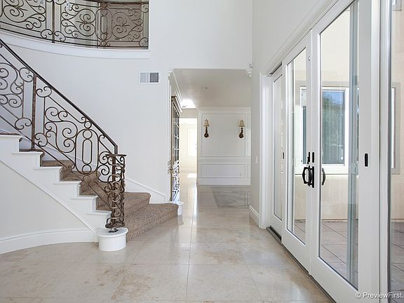 This property is nestled in the quiet, gated community of Tiburon with panoramic, back estuary views. An original model home, it is loaded with upgrades such as all stainless kitchen appliances, custom wrought iron staircase, travertine flooring throughout the bottom floor, and custom wall units. Downstairs floor plan includes a formal living room with full fire place, dining room, guest suite with private entrance and a full bath, and an open gourmet kitchen adjoining the family room.