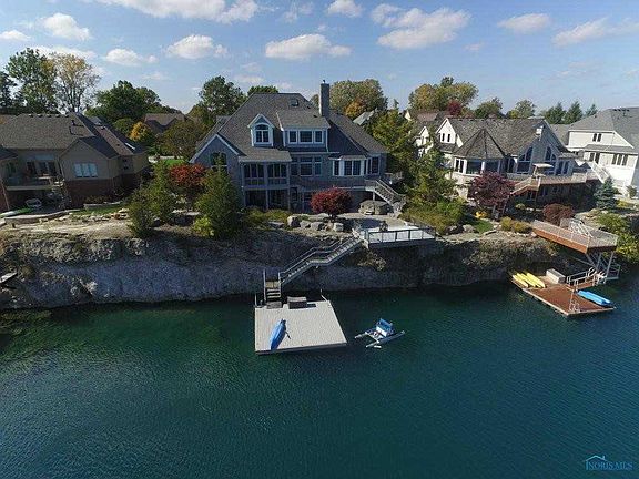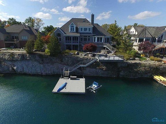Best setting in The Quarry with spectacular crystal clear blue water views. Exceptional Ohio Blue Limestone Construction with extensive glass & high ceilings. Oversized floating dock. Finished lower walk-out has Fam Rm, wet bar, 5th bedrm & full bath, exercise rm, 20 x 9 workshop, & 1500 sqft storage. Patio with hot tub, wired with speakers in many rooms. Cantilever deck over quarry rim.