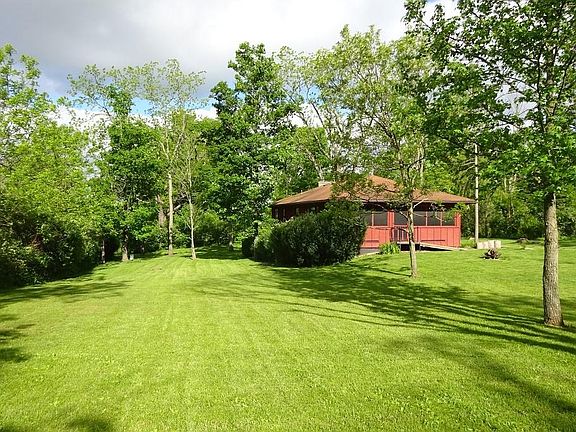 Country living! Ranch home nestled on little over one acre private wooded lot has much to offer. Full front screened in porch with swing. Large living room, two bedrooms, full bath, kitchen includes newer stainless steel refrigerator and range (2017) and dishwasher. Open to family room or could be dining room with gas log fireplace. Finished walk-out lower level makes for an awesome in-law or teen suite and includes a living room, bedroom, full bath and large kitchen. that includes refrigerator (also older range and refrigerator in cellar area. Laundry room includes washer and dryer. Unfinished area for storage houses hot water tank (2014) and boiler approx 10 years). Two car detached garage/storage building. Close proximity to highway access.
