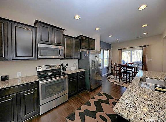 Beautiful 2 Story home with 4 beds/ 2.5baths. Granite countertops, Walk In Pantry, Bar Seating, Laminate Hardwoods. Cozy Fireplace in Family Room, Speakers are Wired (Reciver Does Not Convey). Large deck for Entertaining. Backs up to the pond with fountain. Great Back Yard and a 1Yr Home Warranty Included.