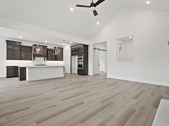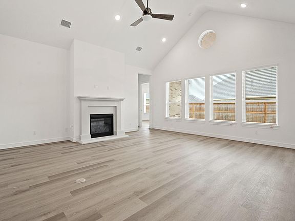 Final opportunity on spacious 70’ homesites! This stunning one-story home offers 4 bedrooms, 3.5 baths, and a rare 4-car tandem garage. Step through the inviting foyer accented by a custom feature wall and discover a private home office—perfect for remote work or study. The open-concept layout centers around a gourmet island kitchen with dark stacked cabinetry, quartz countertops, and stainless steel appliances, seamlessly flowing into the great room with elegant crown molding and a cozy fireplace. Throughout the home, stylish tile floors add a touch of sophistication. The serene primary suite features a striking accent wall, a generous walk-in closet, and a spa-inspired bath complete with a freestanding tub. Enjoy effortless indoor-outdoor living on the expansive covered patio—ideal for relaxing or entertaining. Don’t miss your chance to call this beautifully designed home your own!