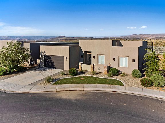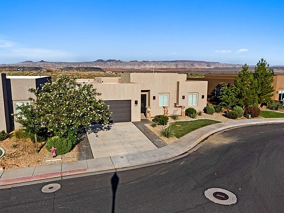 This recently updated home boasts 4 bedrooms, including a bunk room, all with en suite baths. The open floor plan allows natural light to flood in and offers beautiful views to the east toward the Hurricane Cliffs. These stunning vistas can also be enjoyed from the rooftop deck, which features a hot tub. Just out your back door, you'll find Sand Hollow State Park, perfect for water sports and ATV adventures on the sand dunes, as well as the Sand Hollow Golf Course (all with public access). Additionally, Zion National Park and Snow Canyon State Park are both only 30 minutes away, providing even more opportunities for outdoor enjoyment. Enjoy the convenience of HOA benefits, including full yard maintenance, access to 3 swimming pools, gym, pickleball & tennis courts.
