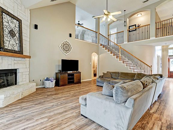 Stunningly beautiful home in guard gated community with open floor plan offers relaxing newly plastered in-ground pool with spa in ideal location. Amazing island kitchen features stainless steel appliances, abundant cabinetry, gas cooktop & sizable pantry. Kitchen seamlessly flows into breakfast nook and spacious living area with floor to ceiling stone gas fireplace, and huge windows that flood the room with natural light. Large master suite offers dual sinks, vanity area, whirlpool tub with separate shower and walk-in closet. Upstairs provides 4 sizable bedrooms 2 full baths, media room and game room, great for entertaining! Handsome study down with glass French doors. This exquisite home with a stunning outdoor oasis has ample room for kids to run and play and great for relaxing with family & friends. Highly functional home offers versatile living spaces and upgrades including new flooring throughout entire first floor. Exemplary Conroe ISD!