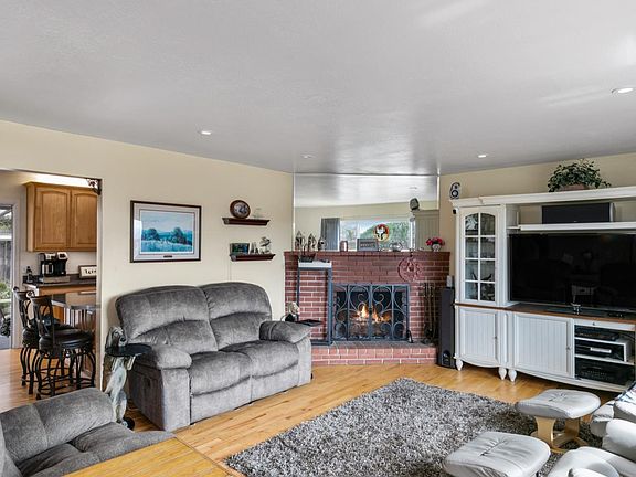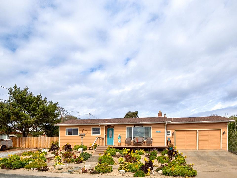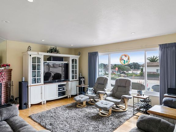 large corner lot with a view, fully landscaped, walkable/bikeable location near Central Marina, Olson Elementary and City parks, easy highway access, and near beautiful beaches! Front deck has views of Toro Mountain, Ft Ord, Carmel Valley Mountain Range, city lights and Marina sunsets. Front yard is landscaped with drought resistant plants, Wi-Fi drip watering system, and yard lights. Living room has large picture window with expansive views, recessed lighting, and wood-burning brick fireplace. Gourmet kitchen Corian counter tops and bar, gas stove, stainless steel cooking area and large sink, cupboards and pantry roll out shelves solar tubes Refinished original red oak hardwood floors throughout, cedar-lined bedroom closets, and tile-floor bathrooms with heated floor in half bath The backyard has a new cement-stamped patio with wood-burning fireplace, party lights and Bose speakers, faux stone retaining wall low maintenance landscaping, pond, and 8.5x12 storage shed.