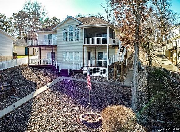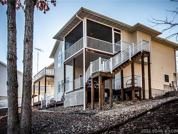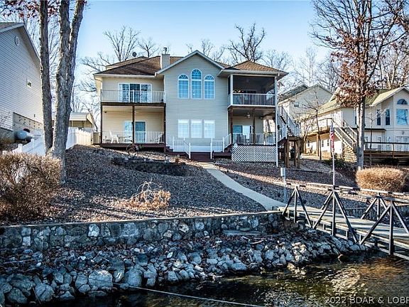 Drastically Reduced 4 Bed 4.5 Bath Turnkey Home. Huge bedrooms! 10 foot ceilings in the basement, large oversized 2 car garage and much much more! Comes fully furnished including a Wet Bar on the lower level, 2 fireplaces, 2 Master Bedrooms, large open floor plan, screened and open decks, great views of the lake with deep water in a cove location, 2 well cement dock w 2 hoists, close to golf course, groceries and theater. Great parking for everyone you know just off of O Road, one of the most desirable areas of the lake. Nice low maintenance landscaping. So much here you have to see it to believe it.