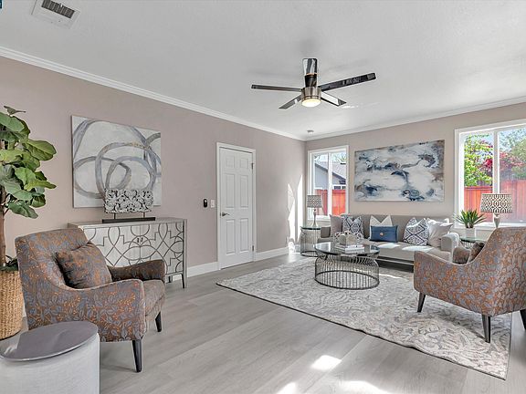 Stunning remodel! Single-story home at the end of a quiet court! You will be instantly drawn into this home as you open the door. Vaulted ceilings in living room, dining room and kitchen areas with skylights. The custom designed kitchen with LVP flooring features a 5 burner gas stove, double oven, quartz counters, soft-close cabinets and drawers. Primary bedroom offers a wall to wall closets. Enjoy luxurious spa like bathroom with an ample size shower stall and a free standing sunken tub. Non-primary bedrooms are also spacious and secondary bathroom offers a shower over tub with clean white tile shower enclosures. Court location offers an an expansive backyard and generous outdoor space for for dining, lawn furniture and more. Spacious side yard on both sides. One side could be used for RV parking. Low maintenance landscape. Stunning retaining walls. Many newer major components; HVAC, roof, instant hot water, dual pane windows and appliances. Enjoy nearby parks, trail, golf, K-12 sought after SRVUSD schools!