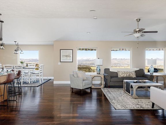 Exquisite Home located in Elko Summit Estates. Nearly 10 acres of Breathtaking Views. Discover luxury and tranquility in this stunning 5-bedroom, 3-bathroom home nestled on nearly 10 acres in the highly sought-after Elko Summit Estates. With panoramic views of the valley and the majestic Ruby Mountains, this home offers both serenity and sophistication. Step inside to an open-concept floor plan, designed for effortless living and entertaining. The spacious living area is bathed in natural light, seamlessly connecting to a gourmet kitchen with high-end finishes. The home features a fully finished basement, providing additional living space, a recreational area, or retreat. Enjoy the beauty of the Nevada landscape from your expansive outdoor space, perfect for relaxation or hosting gatherings. This rare gem offers both privacy and convenience, making it the perfect sanctuary with zero to low maintenance landscaping.