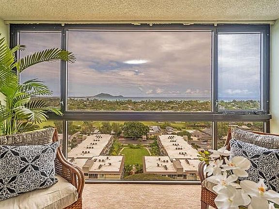Rarely available Penthouse unit 2 bedroom 2 bath and 2 parking unit is now available with amazing views of the ocean and Kailua town. Breath taking sunrises and ocean views at the highest view point in any building in Kailua. This unit won't disappoint with manicured grounds and amenities that tenants can enjoy. Tennis courts, pool, BBQ area,Gym, racketball court, recreation room, kayak & surfboard storage, bike storage. Walking distance to shopping and restaurants due to location you are in the heart of all that Kailua has to offer! The unit has been recently repainted so wall color will differ from pictures. For more information and to schedule a showing please call Rob (This unit is managed by Nalu Realty LLC. Please note that the photos are staged and the unit is unfurnished. Tenant pays for Electricity. The basic Cable and internet is included in the rent but any extra services will be paid by the tenant