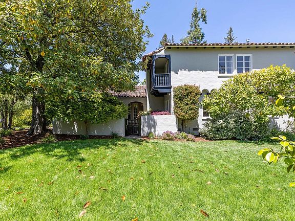 Stylish home in lower South Hillsborough. Gracious entry with high ceilings and elegant staircase, grand living room with large arched window opening onto a delightful courtyard that leads out to a level lawn area. The central floor plan includes a formal dining room and charming light-filled breakfast room off the updated kitchen. The updated kitchen includes a Viking cooktop, Thermador double ovens, Subzero refrigerator and built in desk. A large family room opens out to the backyard patio area. The private upstairs features a spacious primary suite with enchanting balcony, dual walk in closets and remodeled bath The updated hall bathroom serves the 2 spacious and bright bedrooms. The functional 4th bedroom on the main floor with built in desk, cabinetry and murphy bed. The adjacent remodeled full bath is conveniently located to be used as a powder room. Beautifully landscaped gardens surround the property adding to the appeal of this exceptional home full of architectural details.