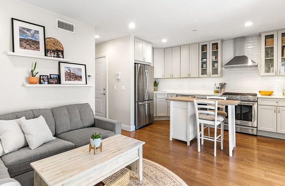 Welcome home! This 1 bed, 1 bath, 524 square foot completely renovated condo is ready for its next owner! Step inside the front door, walk up the common stairs, and enter your gorgeous unit that was gut renovated in 2016. To the left is an open kitchen and living room complete with hardwood floors, Calcutta counters, stainless steel appliances, and lots of cabinet space. There is a slider off of the kitchen/living room that gives you access to your private deck! Back in the unit you'll find a large bedroom with large closet that has plenty of storage. The condo also has a gorgeous bathroom, in-unit laundry, and a storage unit in the basement. The best part of the condo? It's location! You are steps from Broadway and some of the best restaurants in South Boston, minutes to the Seaport, the beach, and the rest of what the City of Boston has to offer! Make this your slice of the city today!