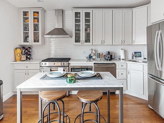 Imagine waking up in a bright and airy South Boston apartment. Walk from your bedroom down the hall to fix a quick breakfast and coffee before enjoying both on your private deck. Head in and get ready for your day in the spacious bathroom, complete with dual vanity. Head out the door and use any of the local transit options to get to work - your commute isnt very hard from this convenient West Side location! On the way home, stop at any of the local restaurants to meet your friends and neighbors before heading back to prepare dinner in your chefs kitchen, complete with Calcutta counters and a custom tile backsplash. Youll still be able to interact with your guests in your open-concept layout, as they can mingle with you from the living room easily while you cook. Once your guests leave, throw in a load of laundry in your in-unit washer and dryer and enjoy a relaxing bath in your soaking tub or a drink back out on the composite deck. Home sweet home!