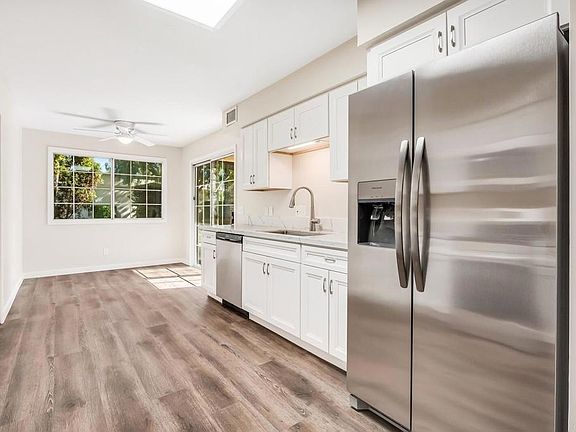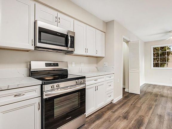 Highly sought after and freshly updated Cordoba model. 1300 sq ft end unit. Nice and quiet building surrounded by greenery. 2 bedrooms plus a den, 1.5 bathrooms, laundry in the unit, dining area and breakfast nook, partially enclosed patio. Very nicely updated with new wide plank floors, new white cabinets and countertops, new appliances, new vanities, Entire unit has been freshly painted 2 tones with new baseboard. This large unit is turnkey and ready to move into.