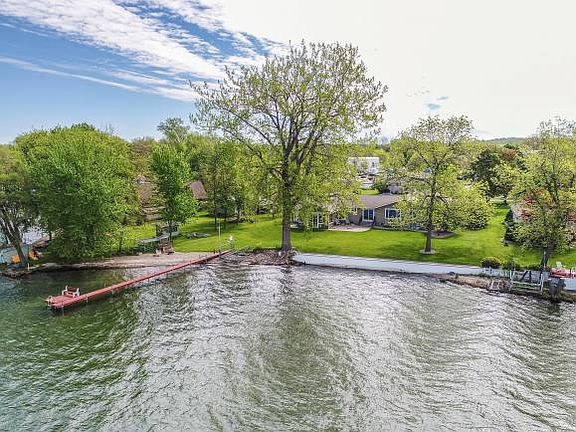 LAKE FRONT TO STOP YOU IN YOUR TRACKS! OPPORTUNITY KNOCKS PRICED TO SELL! On the east side of Cayuga Lake you will find this custom contemporary with 150' of level frontage. Stunning Sophistication & attention to detail will exceed expectations. Created w/ low maintenance in mind (more fun, less work), this 3400sq ft, 5 bed, 4 bath home, was built in 1981 & doubled in size in 2013. Open floor plan, versatile rooms, & high quality amenities. Noteables: high speed internet, municipal utilities, boat to wineries & eateries, natural beach, level yard, court yard, sun room, generator, paved drive.