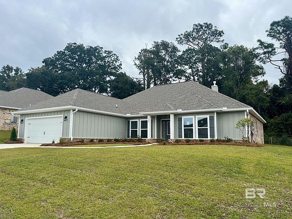 Welcome to Longbranch. As you enter this charming new construction neighborhood, you are greeted by a picturesque landscape that seamlessly blends modern living with natural beauty. Longbranch boasts a total of 28 exquisite lots, each thoughtfully designed to provide residents with the perfect balance of community and privacy. One of the key features of Longbranch is its close proximity to downtown Fairhope, allowing residents easy access to the vibrant city center with its boutiques, restaurants, and cultural attractions. Reduced interest rate available via use of Seller's preferred lender. Welcome to Longbranch! A great location with easy access to award-winning schools, fabulous shopping, restaurants, and just a short drive to gorgeous sugar sand beaches! Brand new and energy efficient, this Avery home features a split bedroom, open-concept floorplan, separate dining room and private study. The Gourmet Kitchen with cooktop and gas drop showcases painted cabinets, Quartz countertops, stainless steel chimney vent hood and appliances, and a culinary prep island overlooking the spacious Great Room and gas Fireplace. Perfect for entertaining and gatherings! Enjoy the privacy of the large covered back porch which backs up to tree line. The luxurious en-suite primary retreat features a relaxing soaking tub, separate shower, quartz vanity with double undermount sinks, and a sizeable walk-in closet. This home is being built to GOLD FORTIFIED Home (TM) certification, which may save up to 50% on annual homeowner's insurance and comes with a 1-year builder's warranty and a 10-year structural warranty. Pictures may be of similar home, but not necessarily of subject property, including interior and exterior colors, options, and finishes. Buyer to verify all information during due diligence.