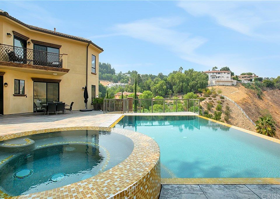 Don't miss out on this stunning 4 bedroom, 4 bath Bell Canyon home with modern clean lines, a light bright interior, and amazing canyon views! The living room has a fireplace, wet bar with a fossilized limestone countertop, and bay windows with a sliding glass door that opens to a large balcony (one of 5). The formal dining room has built-in cabinets and opens to the living room. The remodeled kitchen has quartz counters, subway tile, stainless steel appliances including a 6 burner gas/electric oven, wine refrigerator, center island, and pantry. The kitchen opens to a large family room! The master suite has a sitting retreat and a fireplace, two large closets, and a luxurious bathroom with a spa tub! One of the three secondary bedrooms is ensuite and all bedrooms have balconies. A good-sized landing at the bedroom level leads out to a private patio with a delightful water feature. Other features include wood and travertine floors & built-in speakers throughout most of the home. Walls of glass from the family room open to an entertainer's yard with a dining area and a beautiful infinity pool and spa. This home sits on a 2.39-acre lot with breathtaking Bell Canyon Views from almost every window! Bell Canyon is a 24-guard gated community located in the Award-winning LVUSD school district. Amenities include tennis courts, a fitness center, community center, an equestrian center, and miles of hiking! Close to beaches, restaurants and shopping at The Village & The Calabasas Commons