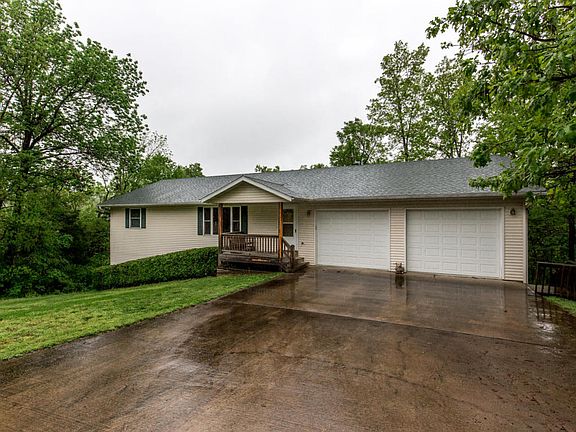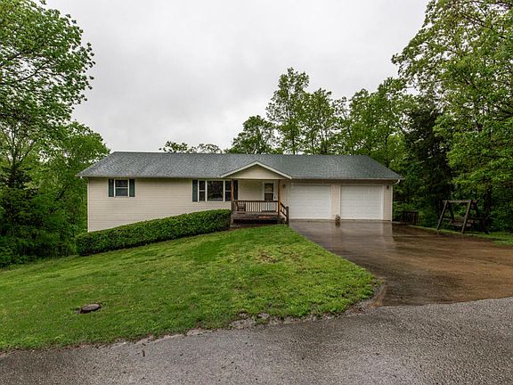Nestled on a secluded lot with breathtaking views, this inviting 2 bed/1 bath home with an over-sized 2 car garage & walkout basement is a must see! Walk into the bright & airy living room w/ natural light that flows into spacious kitchen/dining area featuring striking floors, ample cabinet/counter space, plus access to the upper deck. A great bonus is the immense walkout basement where the possibilities are endless! And don't miss the workshop area with cabinets & a sink in the basement. Lastly, step out to the upper & lower back decks to relax and overlook the gorgeous, peaceful property while listening to babbling of the creek and the chirping of birds! This remarkable treasure could be your dream home on your own piece of private paradise less than 30 minutes from Branson!