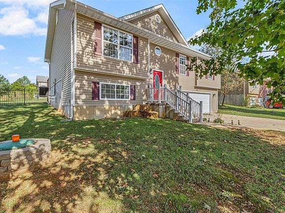 Meticulously maintained 3 bed 2 bath close to two of the lakes in this development. HVAC just maintained with new components, coffered ceiling in the dining room with chair rail. Nice, handcrafted archways and hardwood flooring throughout much of the main level. Updated lighting just installed. The open floor plan includes the living room, dining and kitchen. Main floor laundry for convenience and the lower level has a multi-use area that's great for watching your favorite movies. Lower level also has rough in plumbing for a third bathroom. The deck off the kitchen is the perfect place for grilling and overlooks the nice size yard with custom black aluminum fencing. Deck has been power washed and will be painted before closing. Gated community must have agent to access. HOA fees are paid up to June 2025 and trash is paid up to January 2025. Deck power washed and will be painted by closing.