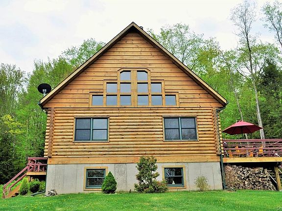 Modern log cabin anyone? This beautifully crafted 3 bed 2 bath home has all the "extras" you will need. This includes 9+ peaceful private acres with a stream, wood stove, three person electric sauna, large back deck (hot tub ready), shed, partially finished basement, and currently has two sources of internet. A short trip to Tennanah Lake, Roscoe, Livingston Manor, and Callicoon. If fresh air and peaceful bliss are on your agenda this is it!