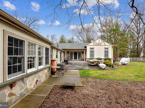 Uniquely situated on 2.32 acres close to the Moorestown Field Club, and walkable to town center, this beautiful stone and wood expanded ranch is a rare find. Enjoy warm spring mornings or cool fall evenings with the view from your bluestone patio, in the total privacy of your large, completely fenced back yard. The spacious grounds have well-established plantings (including a fig tree and berry bushes) and raised garden beds. There is a large shed for outside storage, with a 2-car carport, which is in addition to the side-facing, attached two-car garage with work area, half bath, and large work sink, easily accessible to the back yard. Inside is quality throughout, with wood and tile floors, 6 panel solid doors, high ceilings, custom trim work and beautiful built-in cabinetry. Upon entry into the lovely center hall, the exquisite woodwork of the den/library to the left immediately catches your eye. The custom craftsmanship includes a hidden desk, drawers, file cabinets, shelving, and pocket doors that close it off for privacy. To your right is a large living/family room with a stone, wood burning fireplace, built-ins and a bay window with a view of your garden-like front yard. Lots of inviting windows throughout the house allow for natural light. The formal dining room, sunroom (2011 addition) and spacious kitchen offer multiple choices to eat and entertain. No need to worry about storage in this home! There are several large closets throughout, in addition to a spacious, floored attic that offers even more storage. Down the hall you find the original primary bedroom with a large dressing/sitting room (a potential 4th bedroom, with minor remodeling, if desired). In 2006 an addition was added to the back of the home which is where you find the second bedroom and second full bath, along with the current primary bedroom, which features a beautiful vaulted ceiling, en-suite bathroom, walk-in closest and another fireplace, an efficient âRumfordâ design that burns wood but has a gas line ready if you wish to easily convert. The two zone heating/cooling systems (bedrooms versus living areas) one of which was just replaced last year, along with stone single-story living, offer efficient and cost-effective heating and cooling. This warm and spacious home is waiting for its next owner to make life-long memories. Donât delay! This home wonât last long.