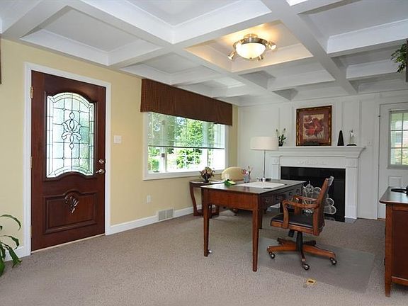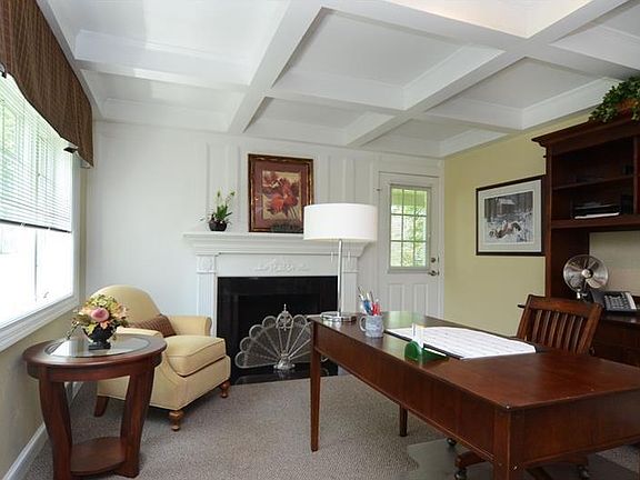 Charming 2/3 bedroom home on .64 acre tree shaded lot. Beautiful coffered ceiling and brick fireplace highlight Living Rm. - Bright and spacious oak kitchen with large pantry and easy-clean ceramic floors - Low maintenance vinyl exterior -
