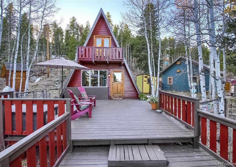 This is it- the A-frame you've been waiting for! This beautifully wooded 1 acre lot features a completely remodeled cabin, expansive deck and fenced in yard, and a detached garage which has been converted into 1 car space and a 400sqft mother-in-law suite. Imagine sipping coffee as you watch the sun rise over the mountains from the balcony, and cozying up by the brand new fireplace on cold Colorado evenings. The updates will have you in awe- with tongue and groove beetle kill pine and ghost wood trim throughout, new flooring in A-frame and MIL suite, fresh interior and exterior paint, landscaping, updated baths in both buildings (the mother-in-law's also has radiant floor heating & recycled glass countertop), Bio-Microbic wastewater treatment system, multimedia water filtration systems in both buildings (fed from a private well with 300gal holding tank), and brand new Jøtul Scandinavian cast iron stove in the mother-in-law. The MIL suite is just a few projects away from having its own kitchenette, and includes more space for storage in the attic. Opportunity and sought after Rocky Mountain living awaits!