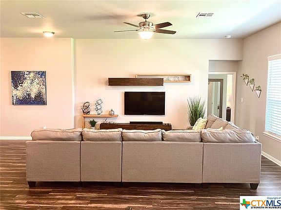 Absolutely beautiful in immaculate condition. This 3 bedroom, 2 bath home looks brand new at a much lower price than new construction. Features include pretty granite countertops with designer tile backsplash and under cabinet lighting in kitchen, vinyl plank, tile & carpet flooring, stainless steel appliances, oversized kitchen island, an open concept plan, large pantry, kitchen cabinet organizer racks, ceiling storage rack in garage, a large master bedroom and bath with a tile walk in shower, dual vanity sinks and a huge master closet. Enjoy the sunsets on your covered patio complete with a spacious back yard. You won't want to miss this beauty!