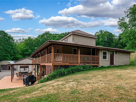 two story home in fairview township with many updates and additions on almost six acres ,four bedrooms and a loft area, could be a computer area,newer kitchen with black granite counters,second kitchen in lower level,master bedroom with newer walk in jacuzzi tub, newer doors and windows ,lower level has a large family room with nature stone flooring ,lower level patio with stamped concrete floor, covered wrap around porch off the dining room 6x80,40 x 32 detached garage and a quonset hut garage 22x16,newly sealed tar and chip driveway large enough for over 15 cars, 25 x 16 above ground pool recently install for ,newly wired for a generac generator,pellet stove that keeps the family room cozy ,small creek goes thru property, some fruit trees.