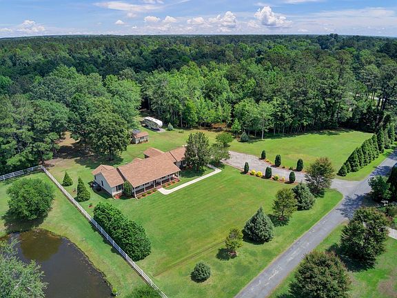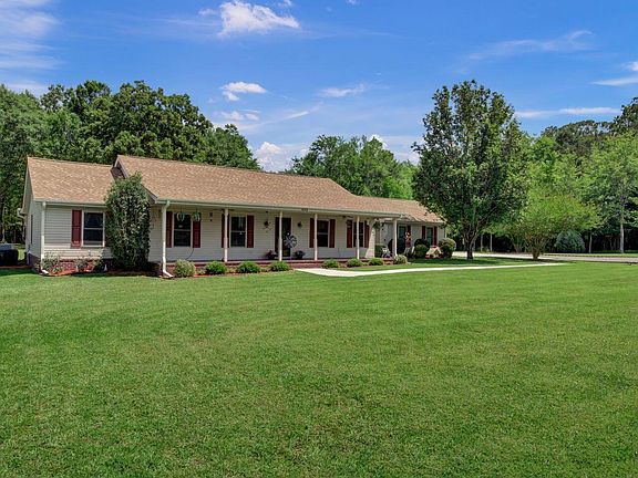 Welcome to this rare opportunity to own this home on 3.55 acres! This unique property is conveniently located just outside Moncks Corner city limits and NO HOA. With no thru traffic to contend with on this private road, the home sits on a large meticulously maintained and beautifully landscaped yard, with a partially wooded back lot full of large mature hardwoods. The property is almost completely surrounded with natural borders (trees, shrubs, woods) for exceptional privacy. The property includes two outbuildings and an RV parking spot that has water and electric hook ups. Wide driveway provides plenty of parking for multiple vehicles and trailers, and a large two car attached garage. A long country style front porch welcomes you to this Lowcountry Living gem!A spacious open family room invites you in with vaulted ceilings, gas log fireplace, built-in cabinets, and easy maintenance luxury vinyl plank flooring. This well-maintained single-story ranch style home lives large for its size and has had many improvements. It has an abundance of storage including built-ins, walk-in closets in EVERY bedroom, and two decked attic storage areas with pull downstairs for access. The true breezeway will be your favorite all seasons room to enjoy company and family while feeling like you're outside. Connected to the large screened in porch to sit and enjoy the privacy of your park-like backyard. The spacious primary bedroom at the end of the hallway has a large ensuite bathroom with dual vanities, walk-in closet, jetted tub, private water closet, separate enclosed shower, and tile flooring. The home is equipped with some energy efficient items such as high SEER HVAC system, LED lighting throughout and solar attic fan. Much of the flooring is new in 2022 along with the roof that has a transferable warranty.