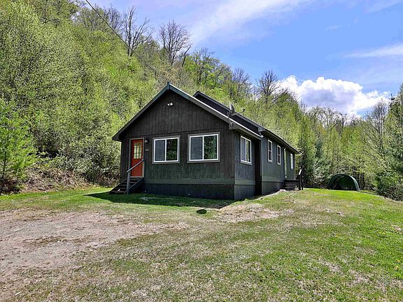 You won't be roughing it when you spend the weekend in this adorable camp! Located on 10.7 acres adjacent to the Green Mountain National Forest, this sophisticated seasonal camp offers all the comforts of home with two bedrooms, a full kitchen, a spacious open floor plan with soaring vaulted ceilings, 3/4 bathroom with shower, a lovely remodeled enclosed front porch, cozy pellet stove heat - even a mini-split heat pump for economical heating and cooling. Not currently installed, but telephone, satellite and fiber optic internet are available and serving adjacent properties. With the National Forest next door, the VAST snowmobile trailhead just up the road, and Killington ski resort 20 minutes away, this is an ideal getaway for the outdoor enthusiast. Though fully insulated, this camp is not suitable as a full-time residence - it is considered a seasonal camp with occupancy restricted to no more than 3 consecutive weeks and no more than 180 days/year. There is a 2000-gallon holding tank, but no leachfield. Buyers encouraged to conduct due diligence.