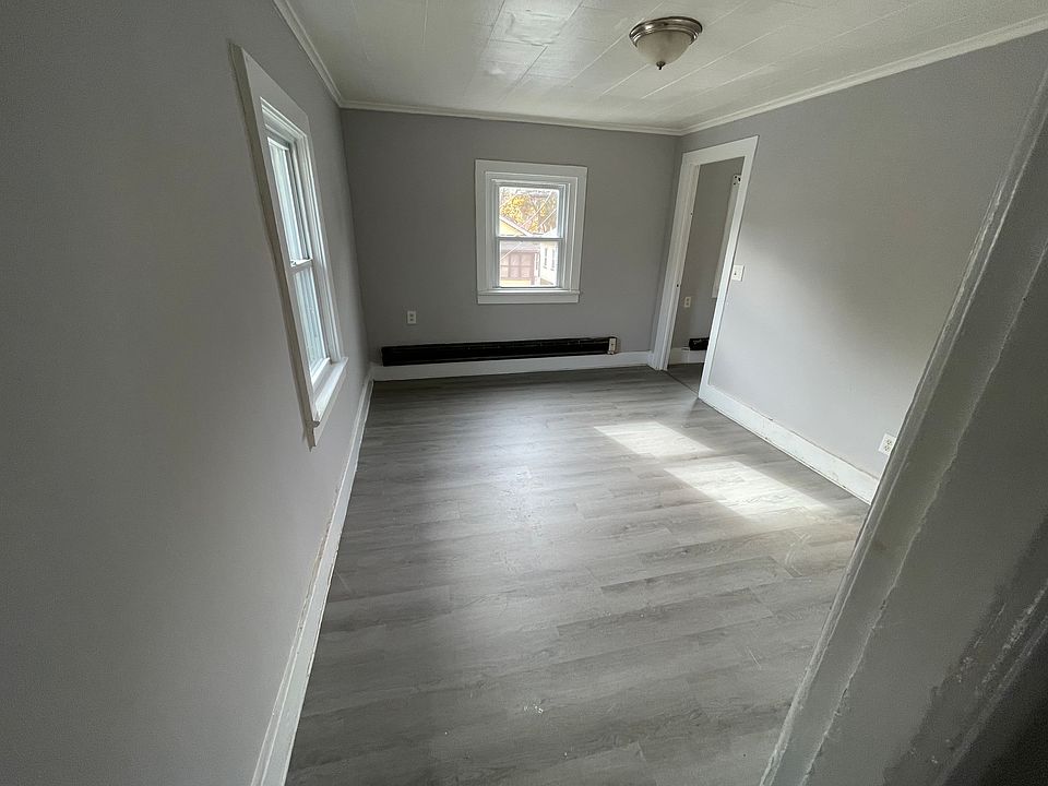 Freshly remodeled upstairs apartment with master bedroom off the living room and 2 loft rooms in upper level . New kitchen cabinets and counter top space , fresh new carpet in the 2 bedrooms as well as. Private entrance and back yard space that's shared . Month to month lease, Tenant responsible for RGE and basic maintenance. Water and refuse is covered by land lord. Street parking is available