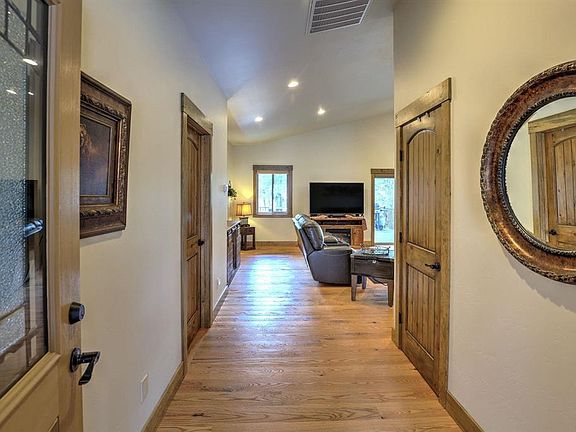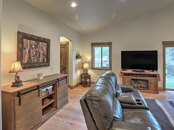 If easy, mountain living is what you are looking for, then come check out this immaculately maintained, one-level, low maintenance, exquisite home! Nestled in the tall Ponderosa Pines, this home is beautifully crafted both inside and out. The cement driveway takes you to an oversized 2-car attached garage, where there is plenty of storage space, or a large work bench could be added. Inside, you will enjoy an open concept floor plan, with the primary suite on one side of the living space and the 2 additional bedrooms on the other side. High-end finishes include: red oak hardwood floors, alder worm wood trim, solid alder wood doors, granite countertops in the kitchen and bathrooms, and travertine tile shower in both bathrooms, just to name a few. The primary bathroom has in-floor radiant heat; forced air throughout the rest of the house. The crawl space has foam insulation, along with a vapor barrier. The kitchen is equipped with a pantry, five-burner stove, stainless steel appliances and a farm style stainless steel double sink. Head out to the partially covered trex deck with metal railing in the backyard, either from the sliding glass door in the living room or the one in the primary bedroom. Here you will enjoy watching the wildlife walk through your backyard. This home offers so many amenities in a great location!